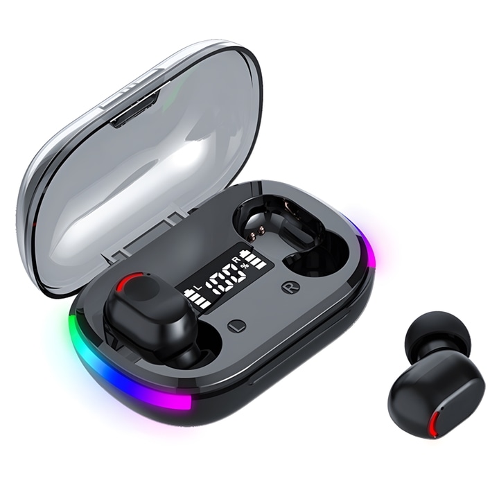 Brezžične Bluetooth slušalke ClearPulse RGB - TWS slušalke z Bluetooth 5.3, stereo zvokom in hitrim polnjenjem - aura black